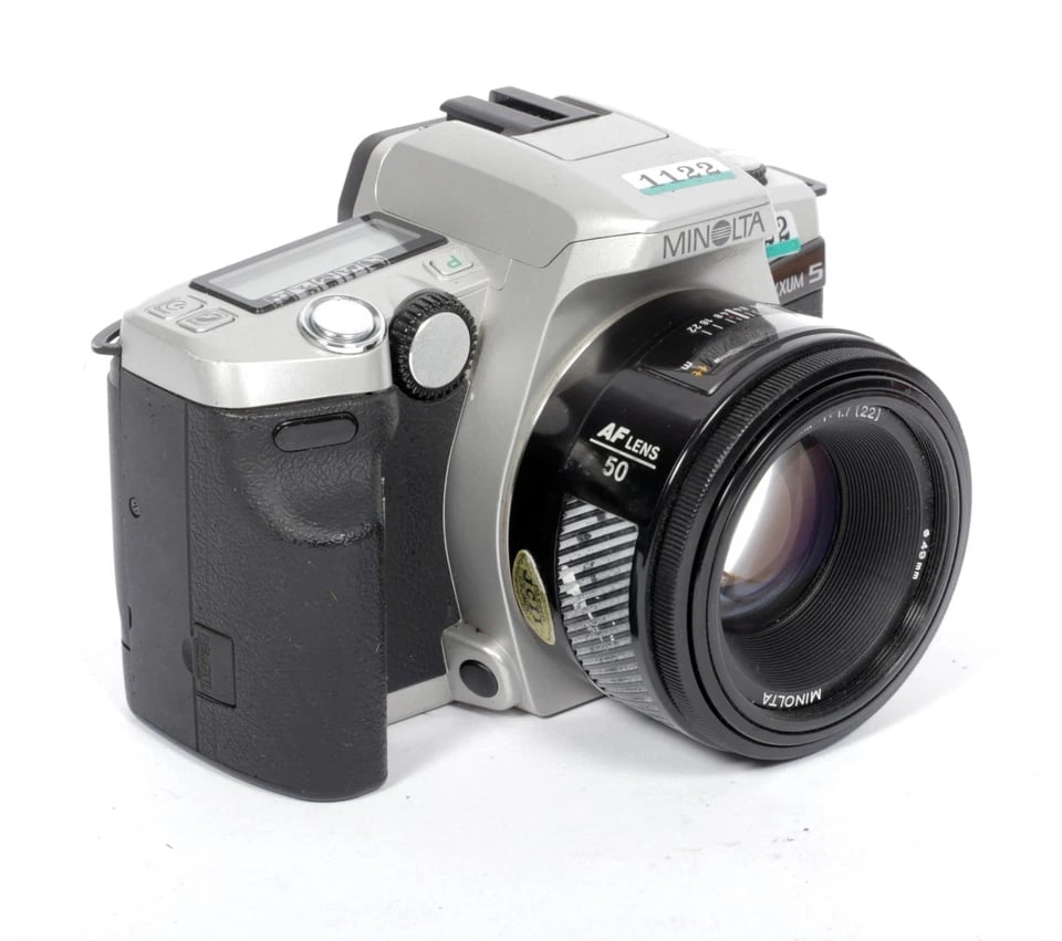 Minolta Maxxum/Dynax 5 35mm SLR film camera with 50mm F1.7 AF prime lens #1122