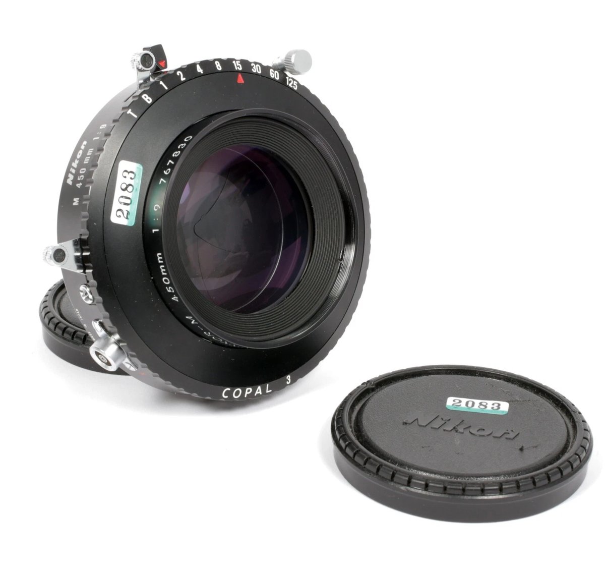 Nikon Nikkor M 450mm F9 lens in Copal #3 shutter #2083